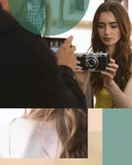 Her first day is rough as she meets her co-worker Julien, and attempts to use a translation app to converse with him but fails. She is greeted minutes later by her boss Sylvie Grateau, who isn't pleased that Emily doesn't speak French. This proves to be a large obstacle as Emily can't communicate with Patricia, the head of social media engagement. When she returns to L’Estrapde that evening, she tries to unlock the wrong apartment as she miscounted the floor levels once again. She introduces herself to her attractive neighbor Gabriel.