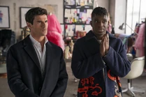 Julien and Nicolas meet with Grégory Elliott Duprée who is relaunching the Pierre Cadault brand. He shows them a runway of models wearing various pants that feature exterior genital accessories. Julien tries to salvage the vision to a confused and upset Nicolas, but it doesn't make much of a difference. Grégory was partly inspired by Louis scandal, seeing as how "men can't keep their dicks in their pants." Nicolas refuses to run the men's collection and even see the women's, which angers Grégory. He storms off and Nicolas tells Julian that Louis wants to speak with him about Sylvie.